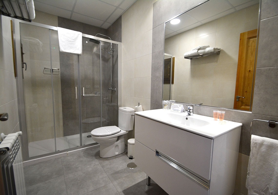 Adicionalmente, disponemos de dos habitaciones de acceso directo desde el exterior y con plato de ducha para personas con movilidad reducida o que prefieran su habitación en planta baja. Todos los dormitorios presentan baño completo con secador de pelo, calefacción, TV y wifi.